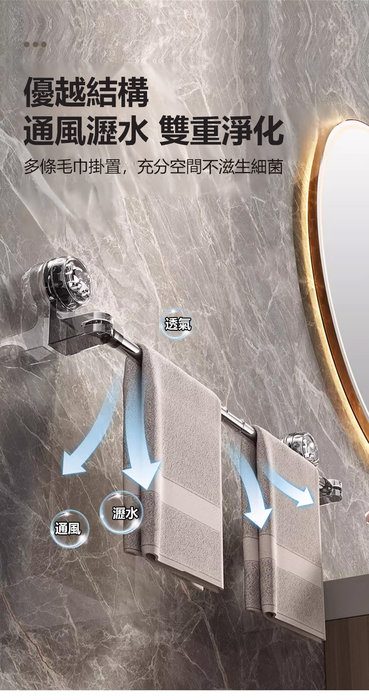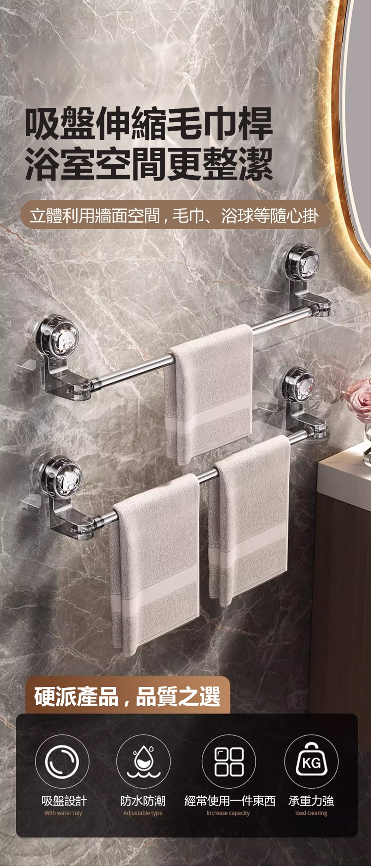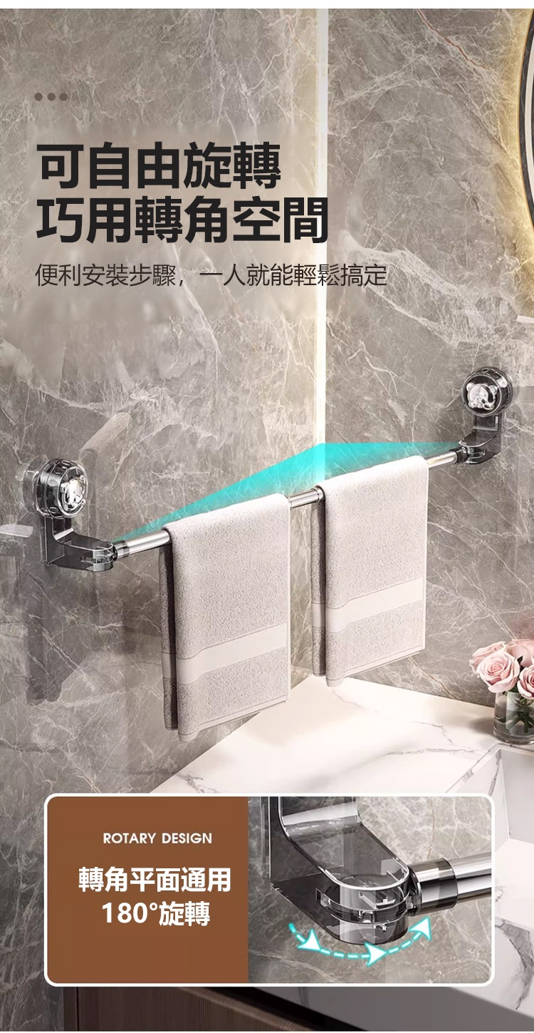 可伸縮可旋轉吸盤毛巾桿